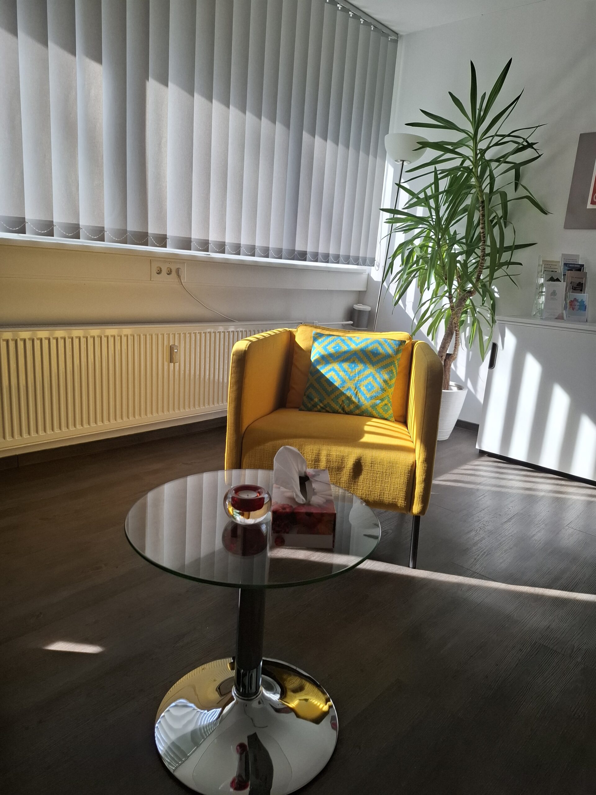 Die Räumlichkeiten werden von mehreren Therapeutinnen und Therapeuten genutzt, jeder mit eigener Praxis und eigenem Arbeitsansatz. Während wir uns die Räume teilen, arbeite ich unabhängig von den anderen Kolleginnen und Kollegen. Ihre Anliegen bleiben selbstverständlich vertraulich, und unsere Gespräche finden in einem geschützten, ungestörten Rahmen statt.